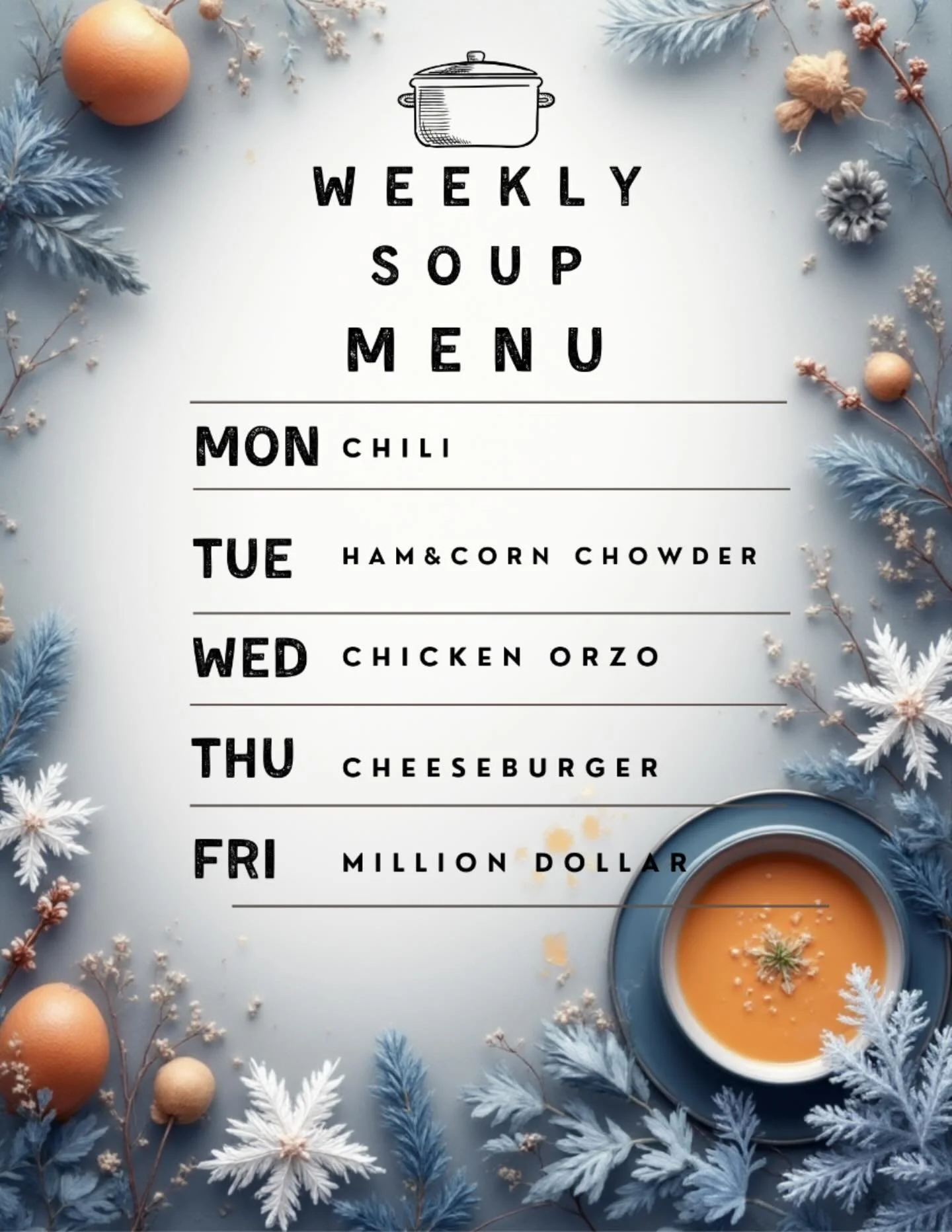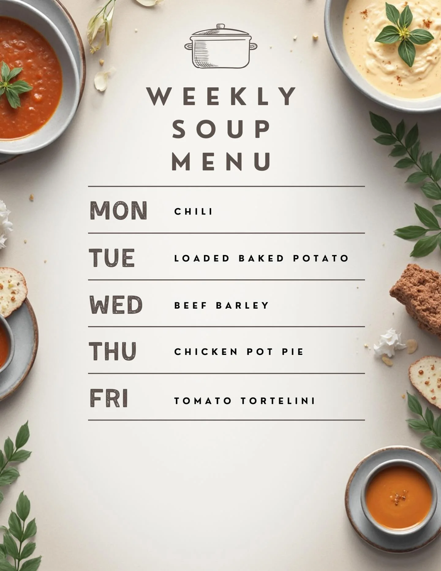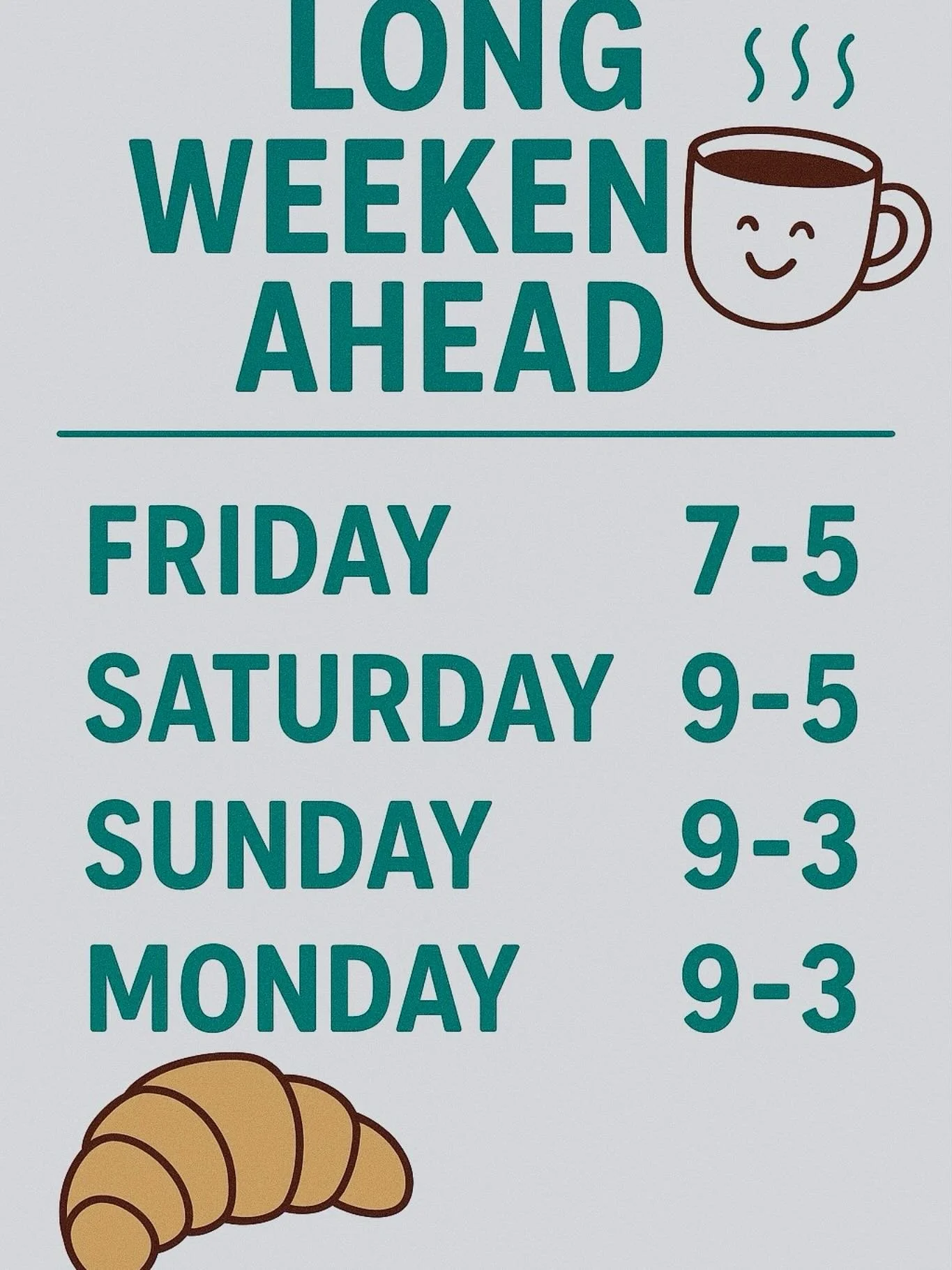 Muffins, Cookies,Brownies,Sweet & Savoury Croissants, Grab and Go snack and lunch items.