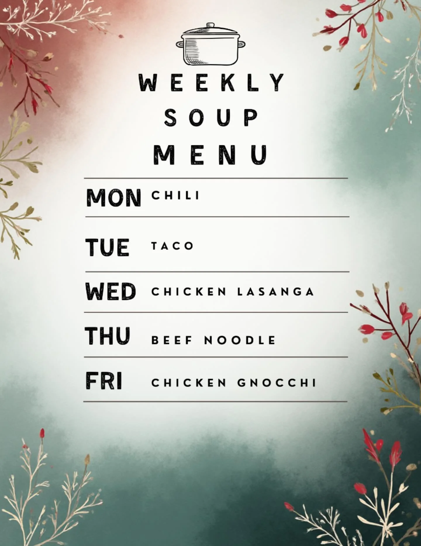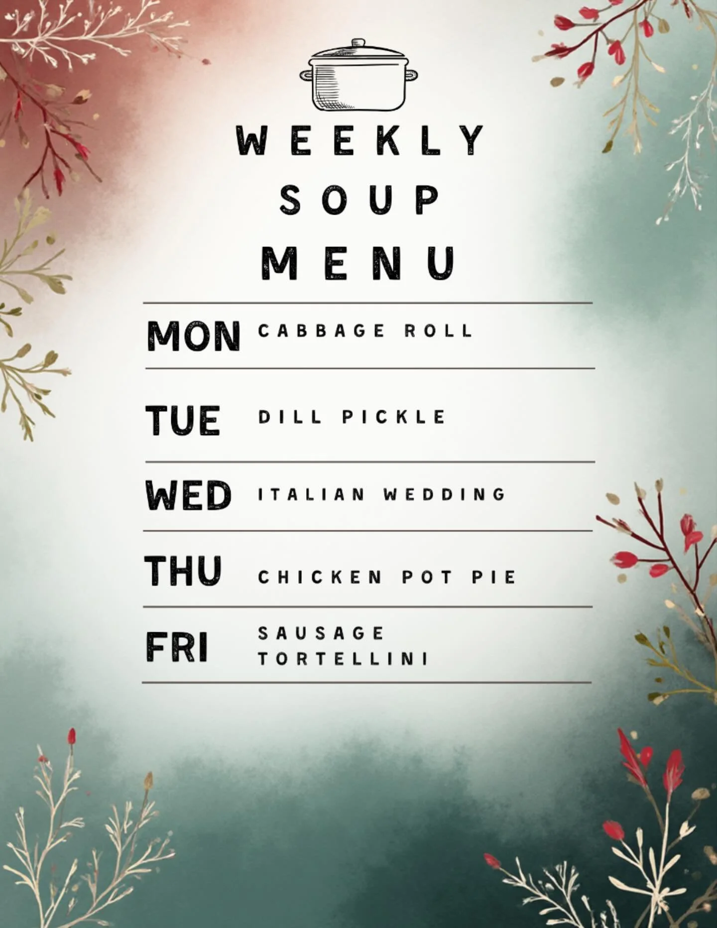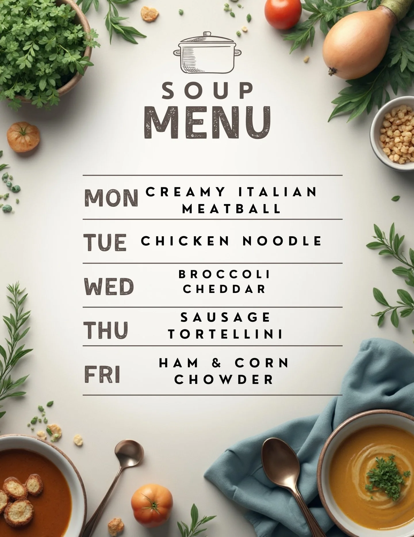 Muffins, Cookies,Brownies,Sweet & Savoury Croissants, Grab and Go snack and lunch items.