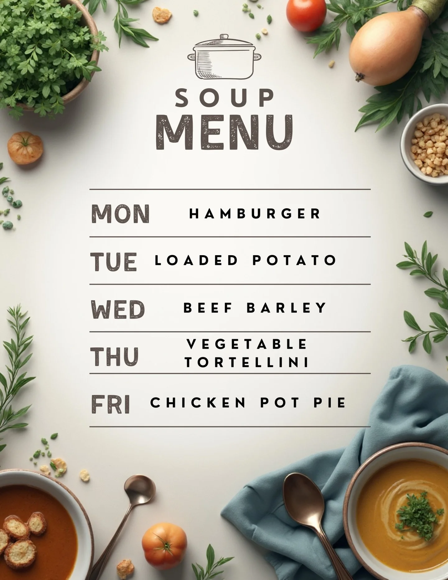 Muffins, Cookies,Brownies,Sweet & Savoury Croissants, Grab and Go snack and lunch items.